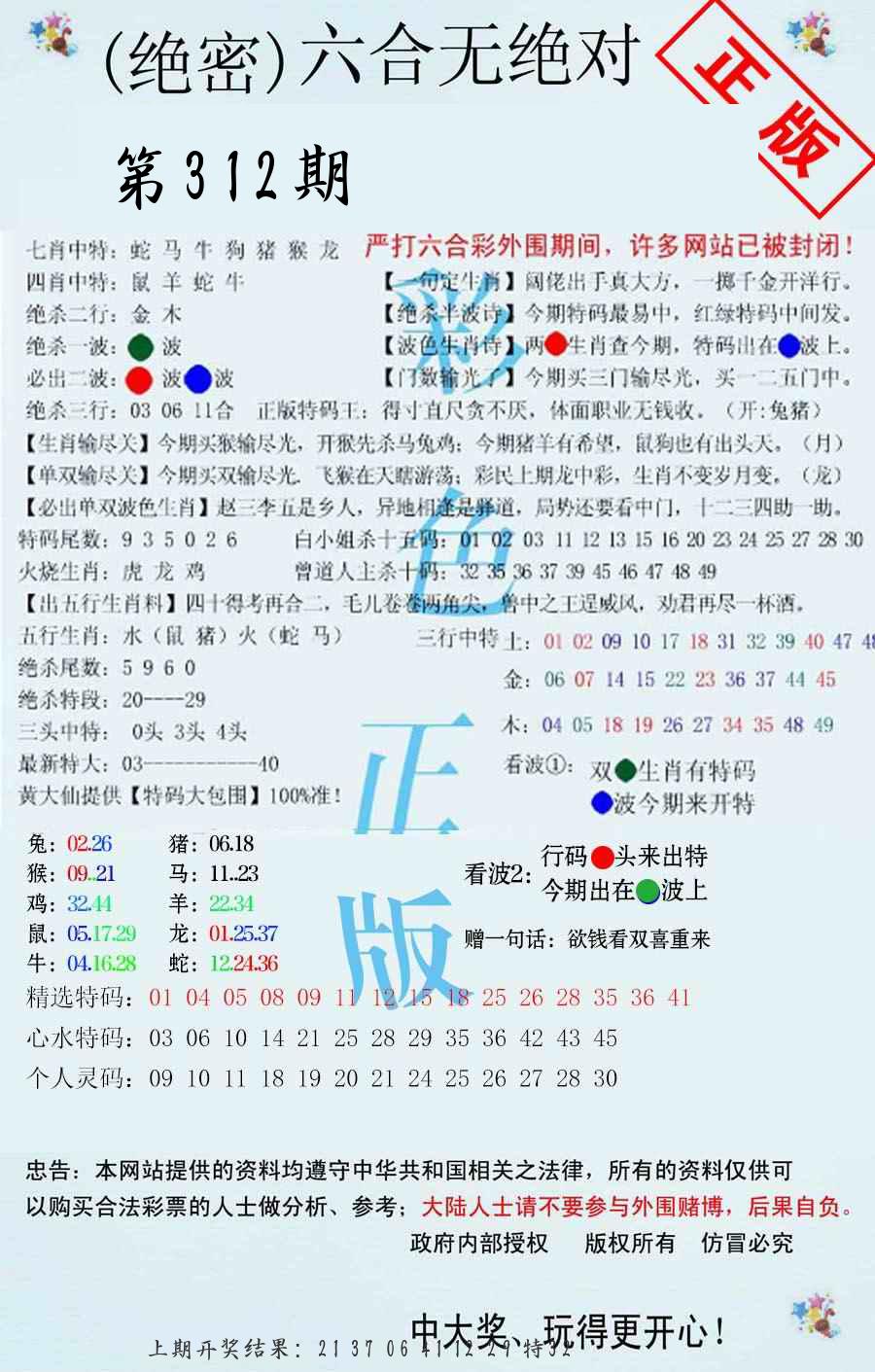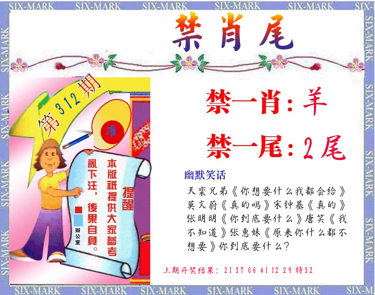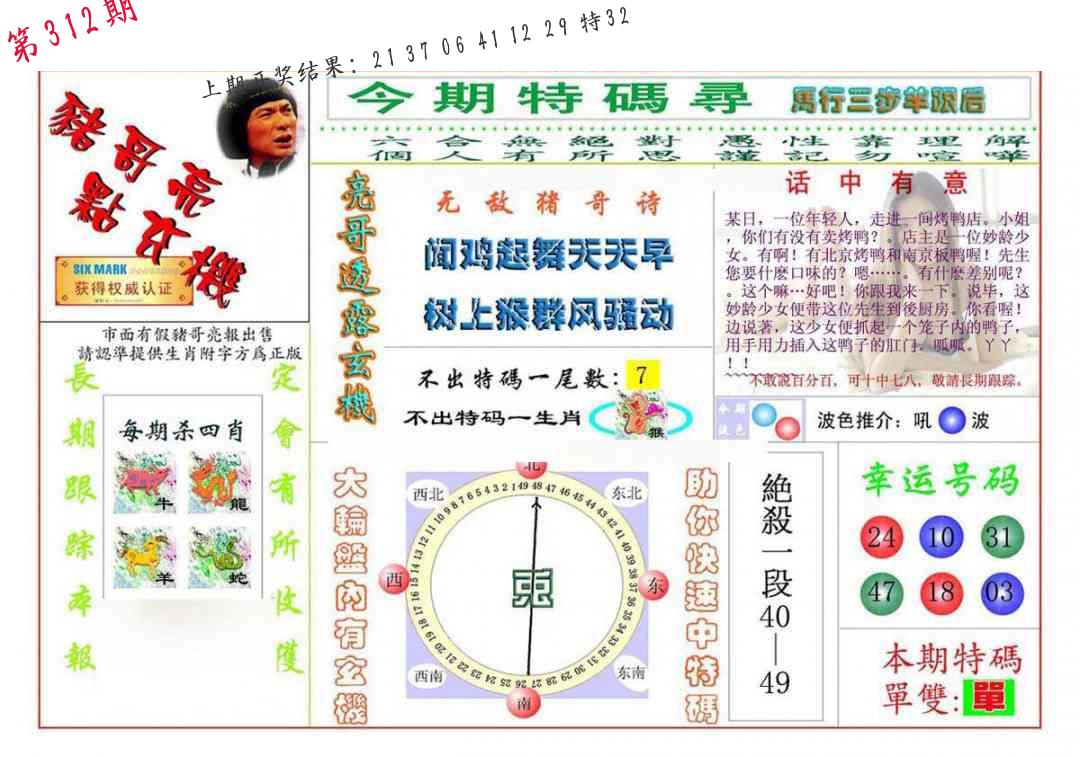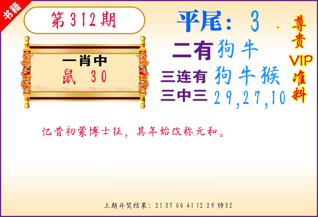 312期绝杀1.肖1.尾 【狗肖7尾】 开 ??????? |