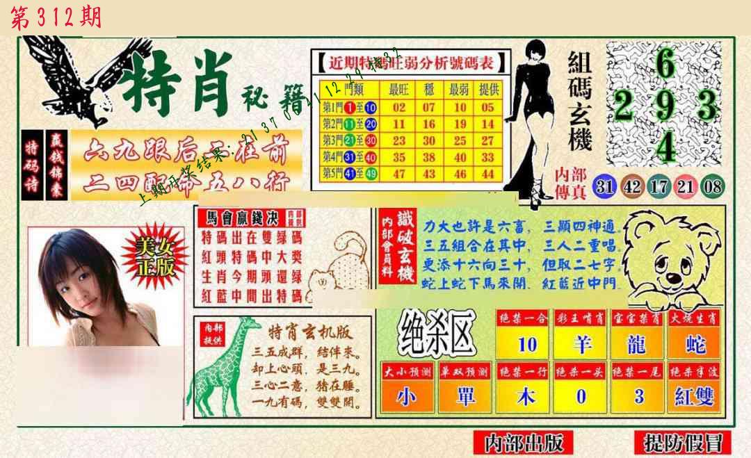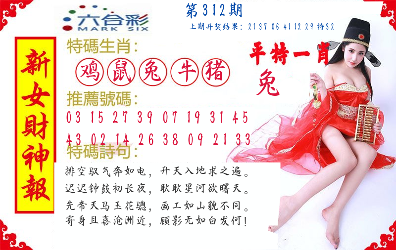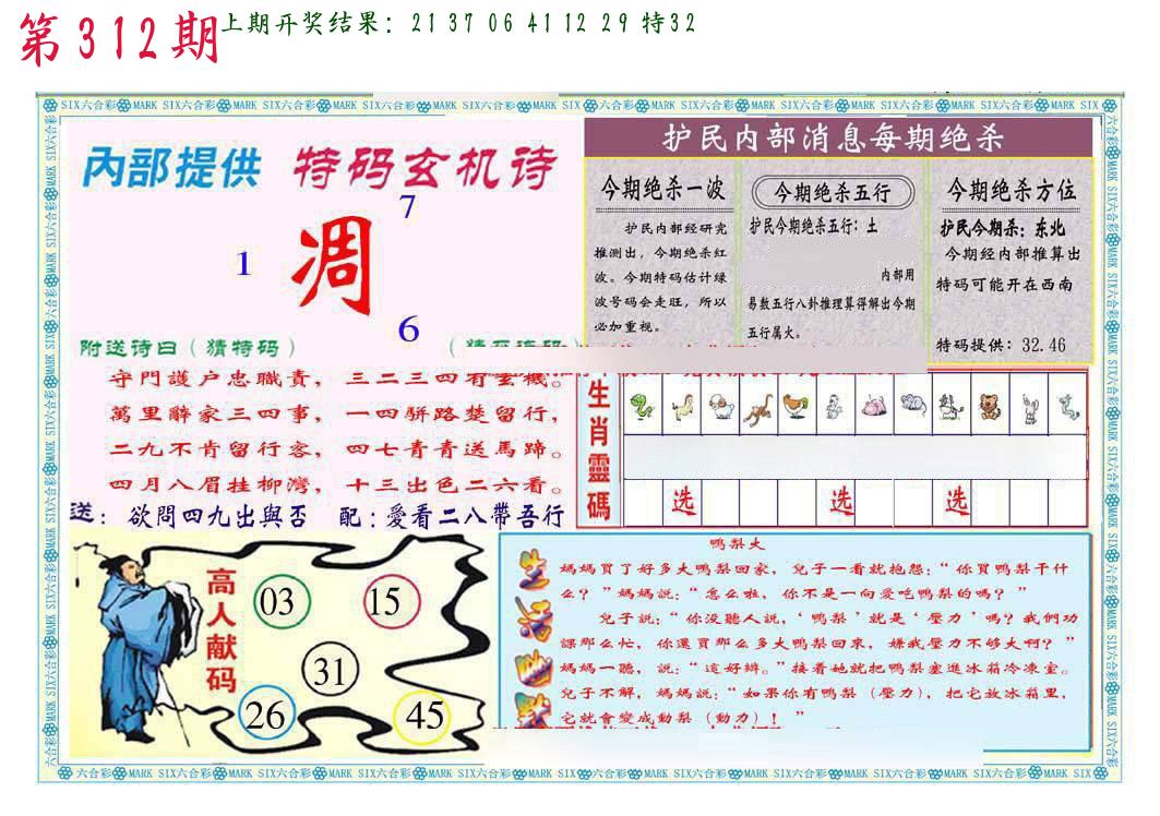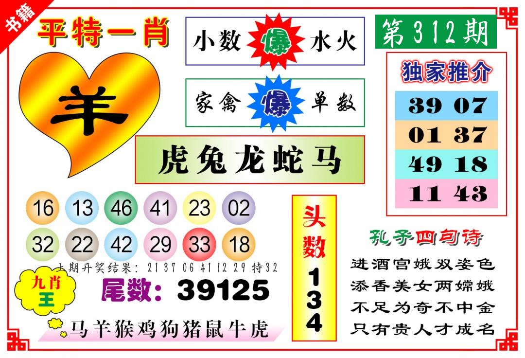 | 312期推荐五肖: 鸡龙羊马猪 ~~稳准狠 |