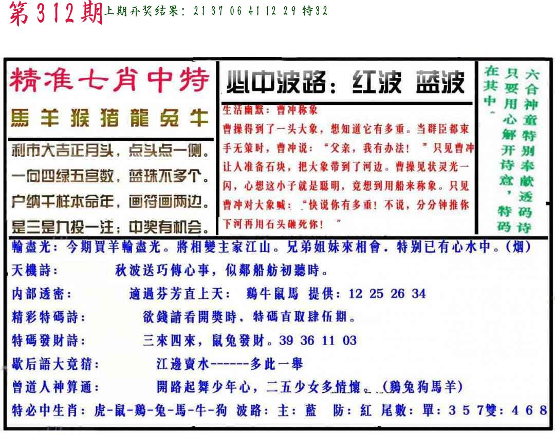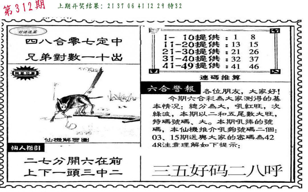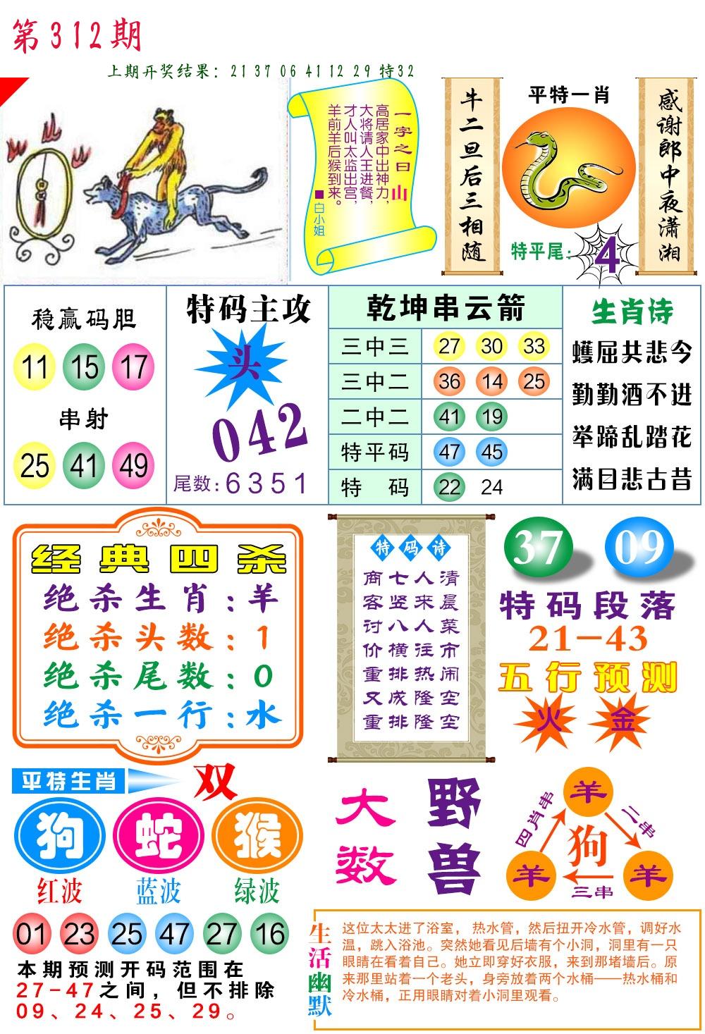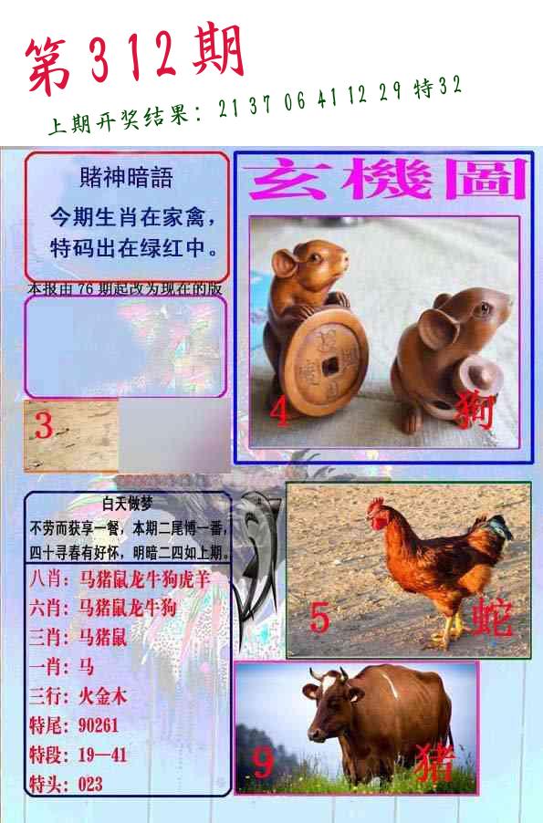 312期 家 【狗鸡猪】 野 【鼠猴龙】开 ??????? |
