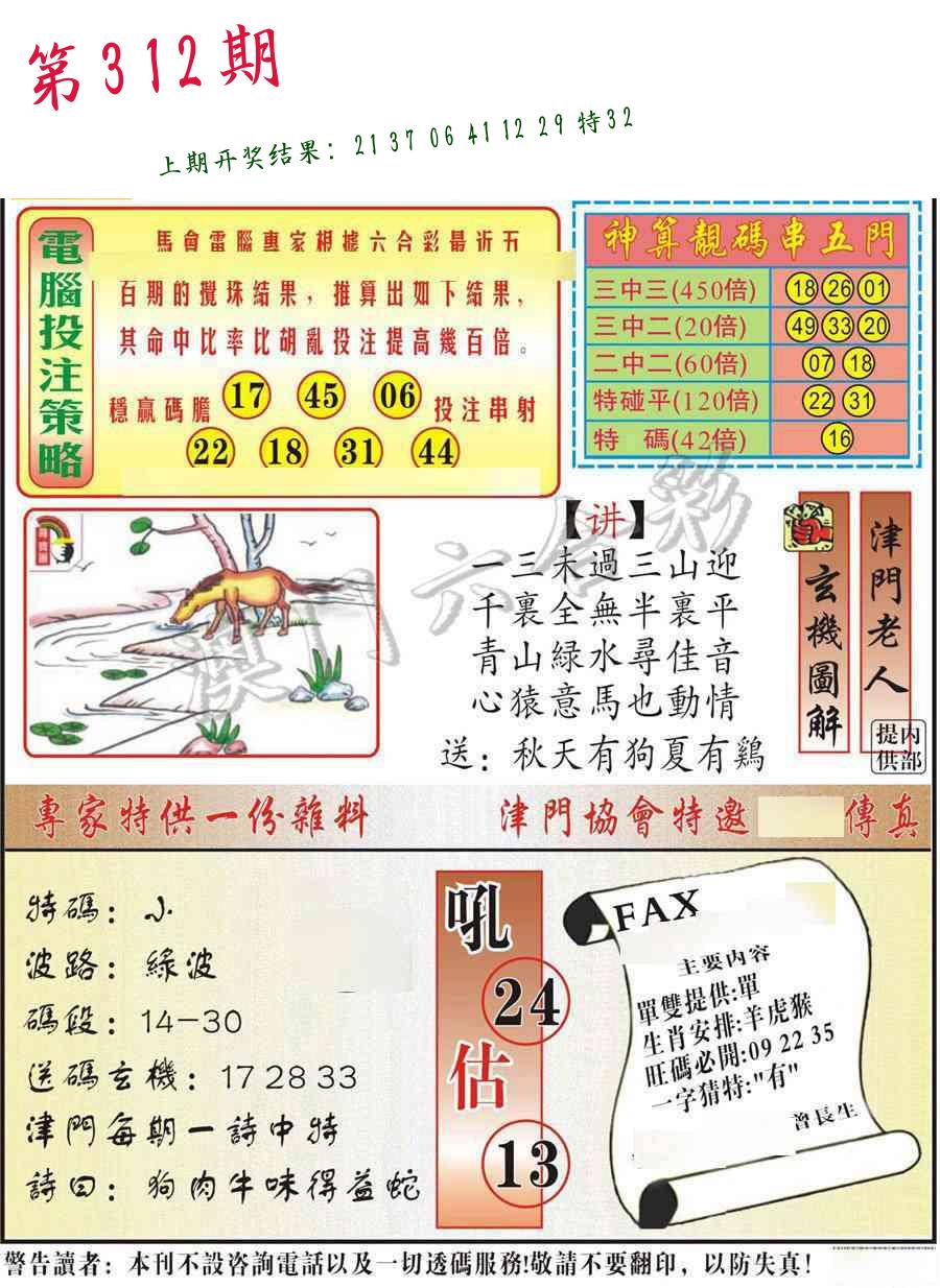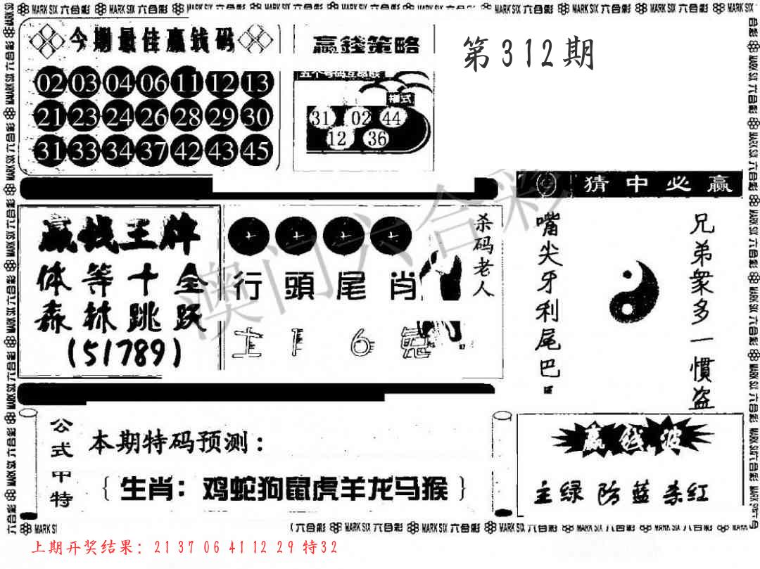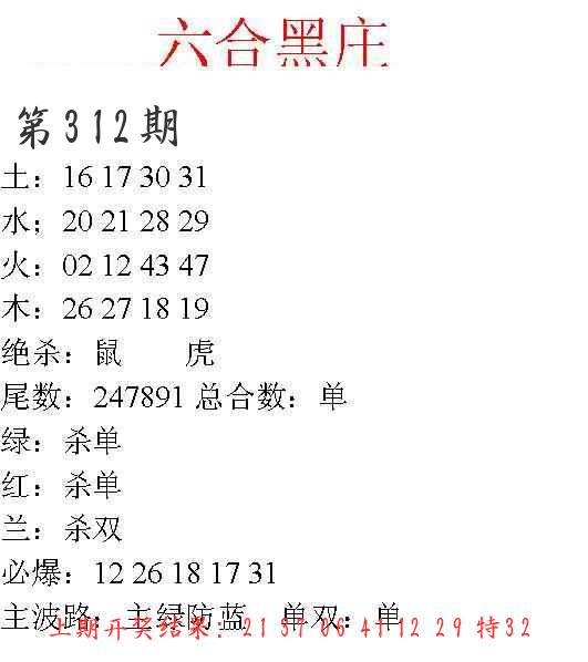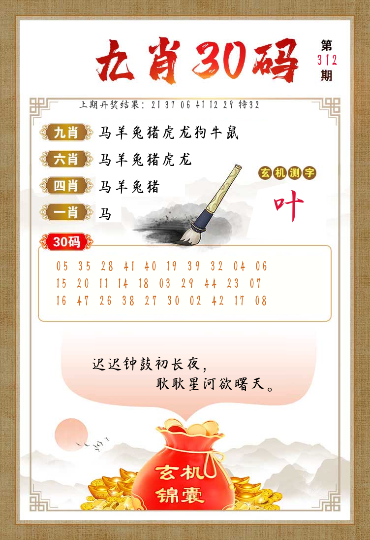 312期 家 【狗鸡猪】 野 【鼠猴龙】开 ??????? |