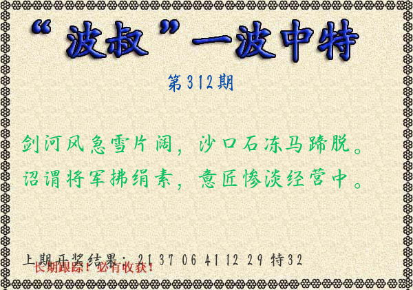 306期绝杀一波 【蓝波】 开 27兔对 |