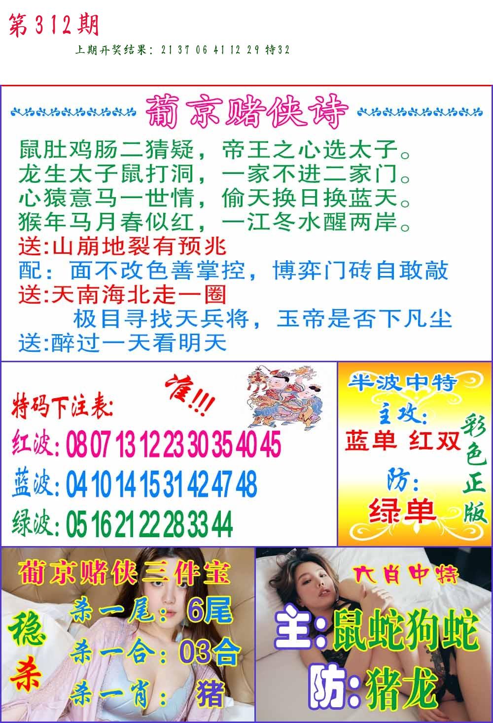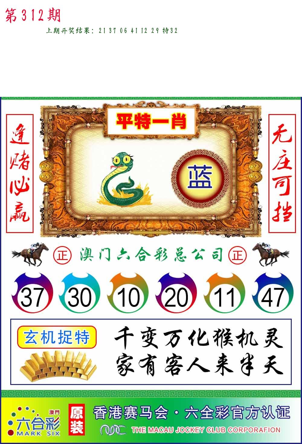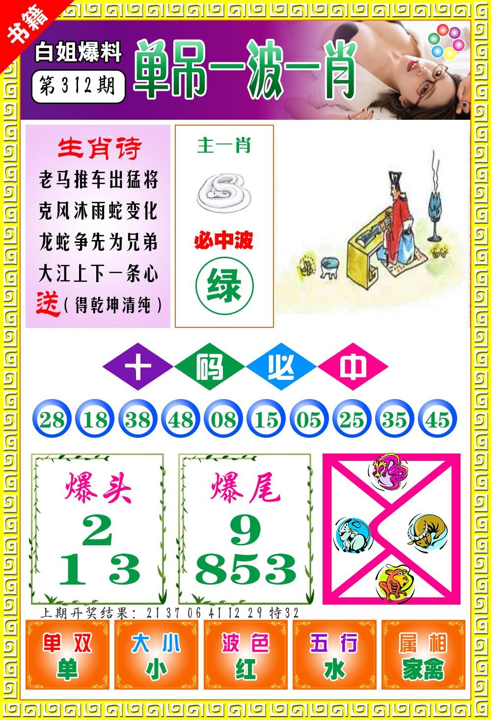 308期绝杀一波 【蓝波】 开 01蛇对 |