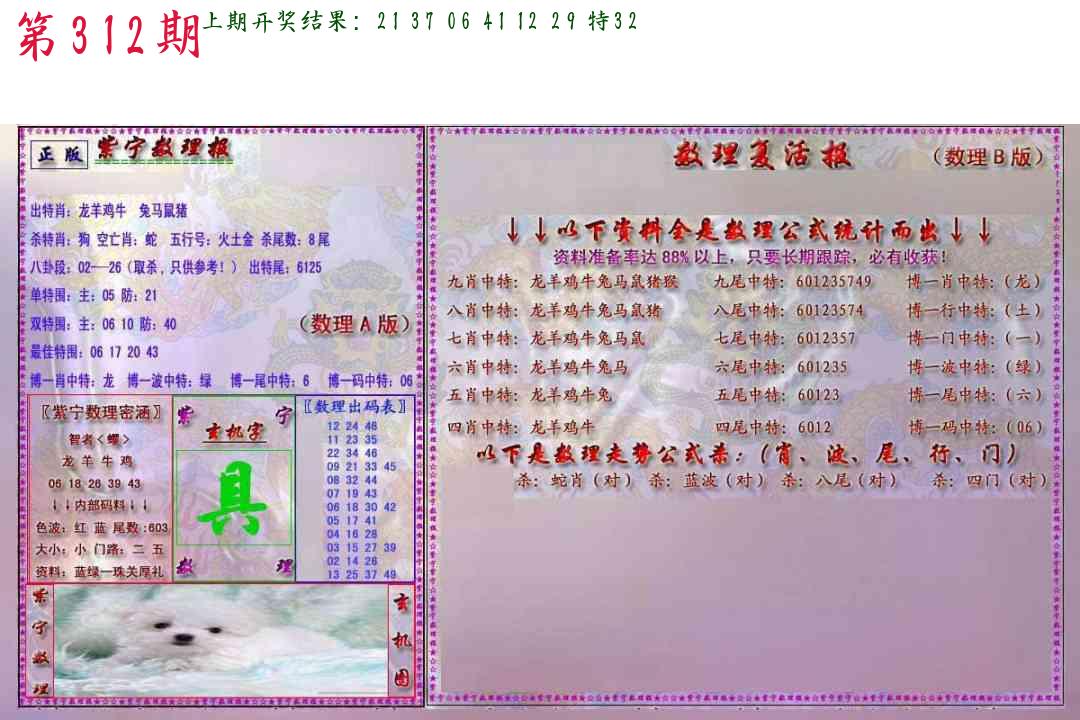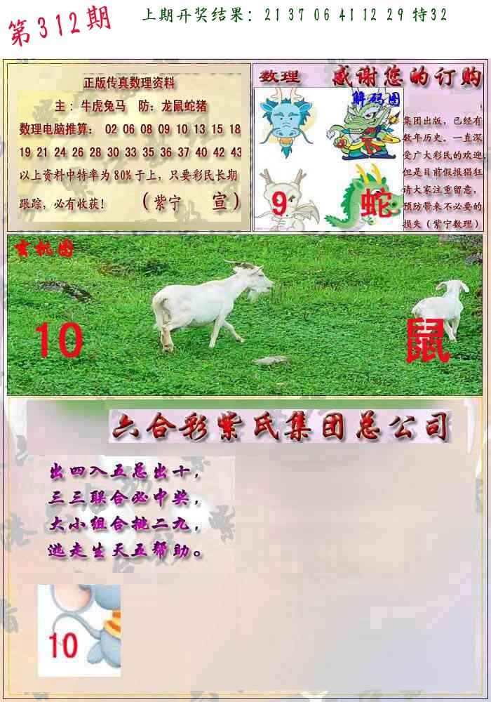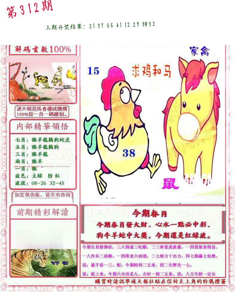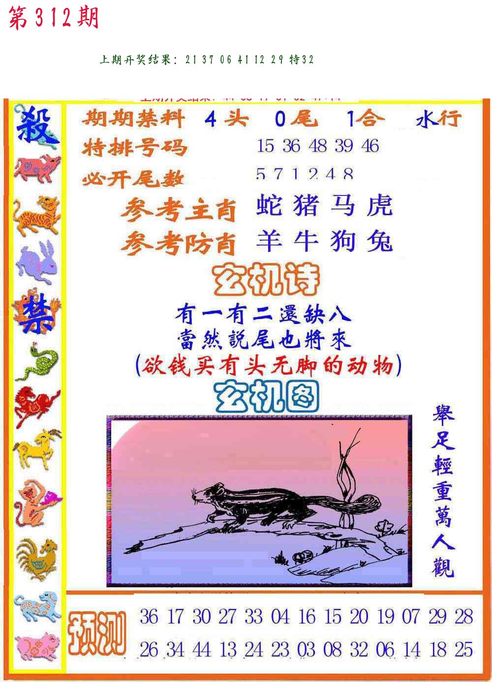 311期家野(2)肖 【家禽+龙蛇】 开 32狗对 |