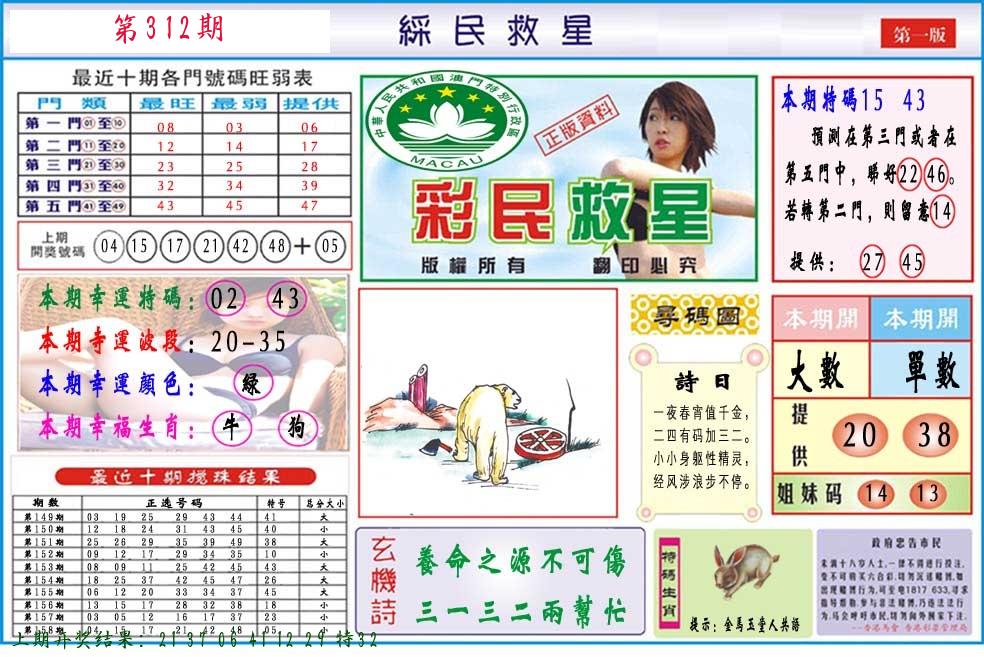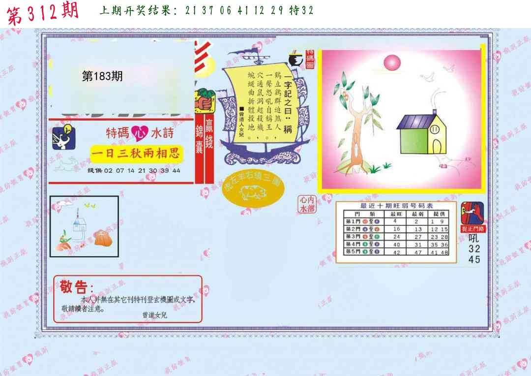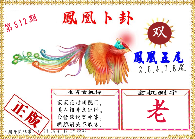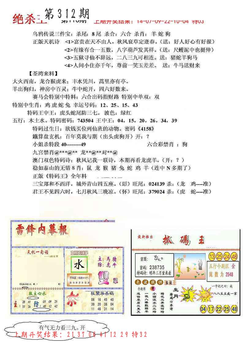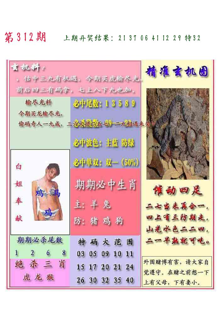311期家野(2)肖 【家禽+龙蛇】 开 32狗对 |
