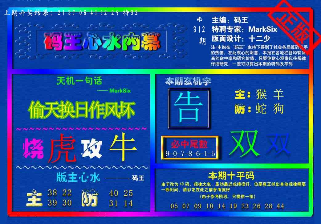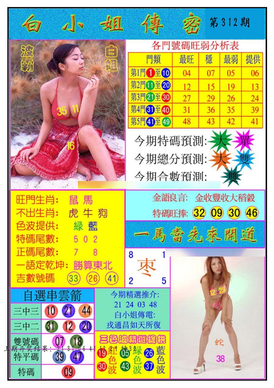 准确率高达90%,期期挑出12-18码 ____________★____________ 【九肖】 312期【蛇狗猪猴虎兔龙鸡鼠】开????? 311期【鼠兔羊蛇龙鸡马猪牛】开32狗错 310期【鼠马牛兔龙蛇狗羊鸡】开28虎错 309期【羊龙鸡马虎狗猪鼠牛】开47羊对 308期【龙蛇猴马鼠狗猪羊牛】开01蛇对 307期【猪鸡牛马羊虎猴龙蛇】开12马对 306期【猴虎龙猪牛蛇马鼠鸡】开27兔错 305期【牛龙蛇鼠狗马兔猴猪】开26龙对 ____________★____________ 【四头】 312期【0-3-1-4】开?????? 311期【0-2-3-1】开32狗对 310期【3-4-1-0】开28虎错 309期【2-4-3-0】开47羊对 308期【1-0-2-3】开01蛇对 307期【3-1-4-0】开12马对 306期【2-0-1-4】开27兔对 305期【1-3-4-2】开26龙对 ____________★____________ 【四行】 312期【金-木-土-水】开?????? 311期【火-土-金-水】开32狗对 310期【木-水-金-土】开28虎对 309期【火-水-木-土】开47羊对 308期【土-金-火-木】开01蛇对 306期【金-土-木-水】开27兔对 305期【水-金-木-土】开26龙对 304期【火-水-金-土】开42鼠对 ____________★____________ 【七尾】 312期【8-4-2-6-0-1-5】开????? 311期【5-1-7-2-6-0-4】开32狗对 310期【1-9-4-2-5-8-7】开28虎对 309期【7-8-5-3-1-4-6】开47羊对 308期【0-6-7-1-3-9-4】开01蛇对 307期【0-2-9-7-5-8-1】开12马对 306期【8-2-3-6-4-1-7】开27兔对 305期【0-8-9-5-2-1-6】开26龙对 ____________★____________ 【双波】 312期【蓝波+绿波】开????? 311期【蓝波+绿波】开32狗对 310期【蓝波+红波】开28虎错 309期【蓝波+绿波】开47羊对 308期【红波+蓝波】开01蛇对 305期【红波+蓝波】开26龙对 304期【红波+蓝波】开42鼠对 303期【红波+蓝波】开45鸡对 ____________★____________ |