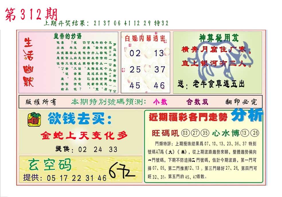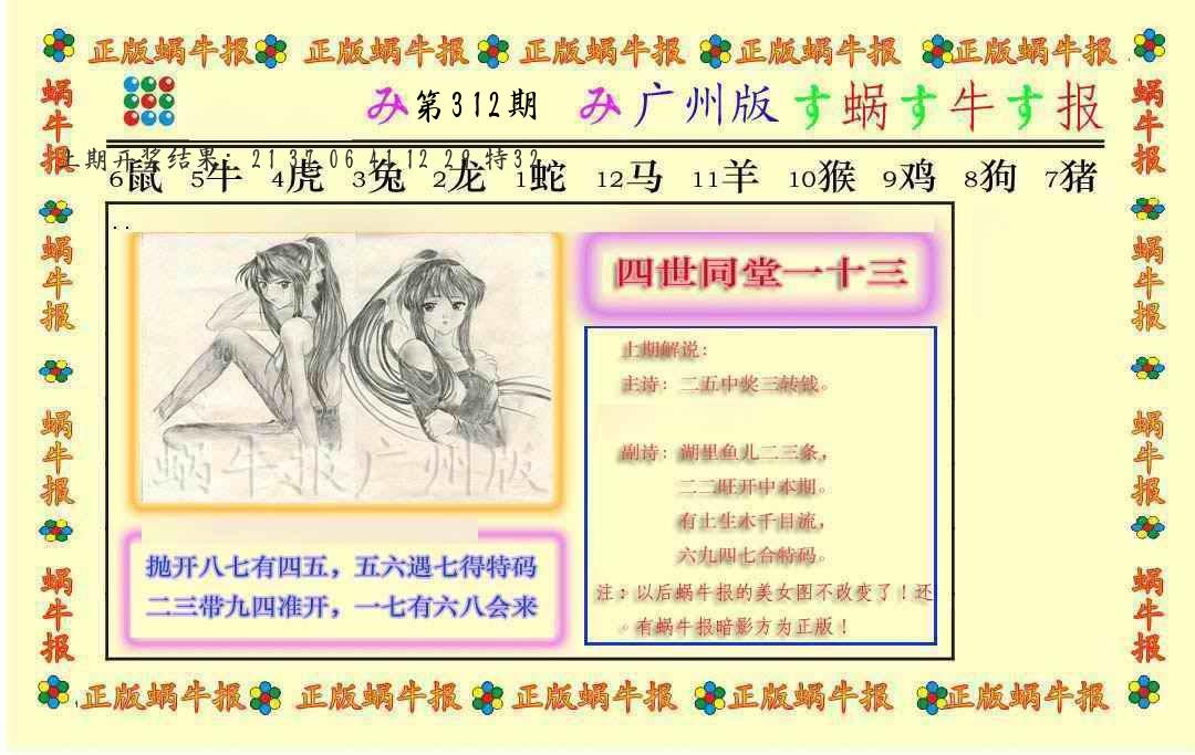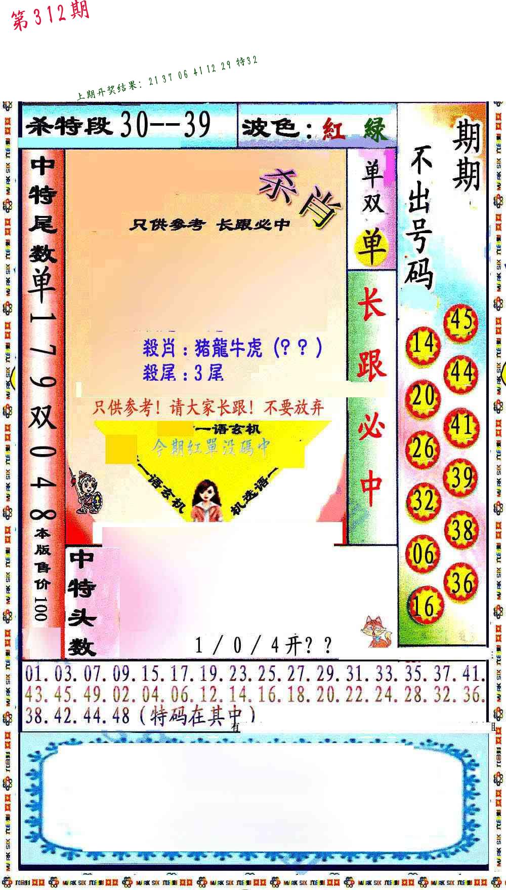308期本期【牛.鼠】输尽光(01蛇对) |
