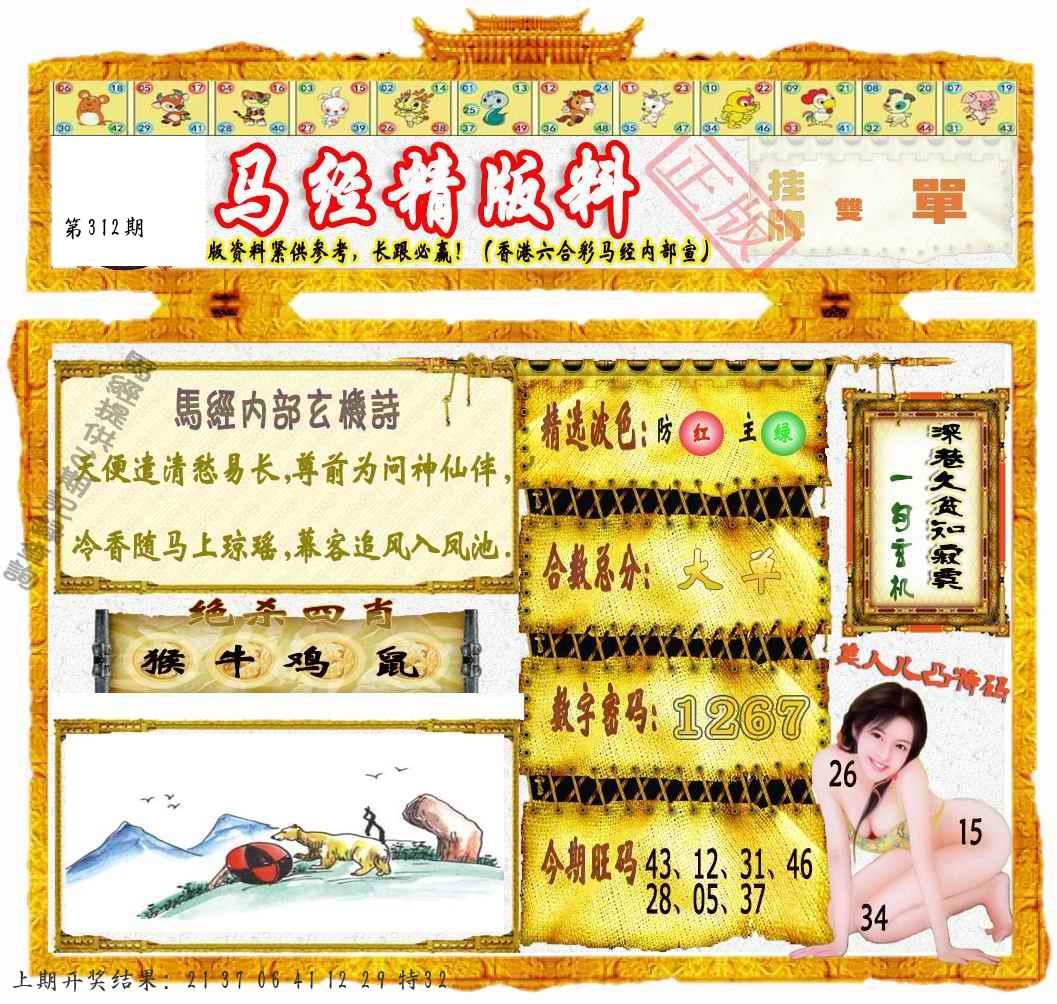 307期 家 【马鸡牛】 野 【兔鼠猴】开 12马对 |
