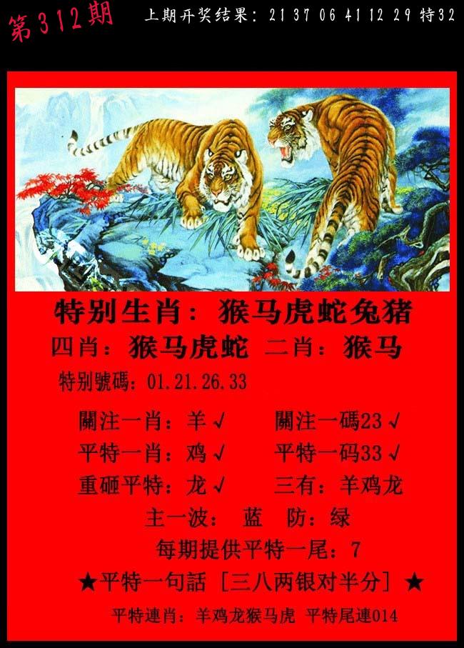 310期 家 【猪羊牛】 野 【龙猴蛇】开 28虎错 |