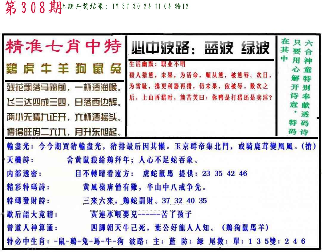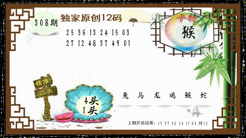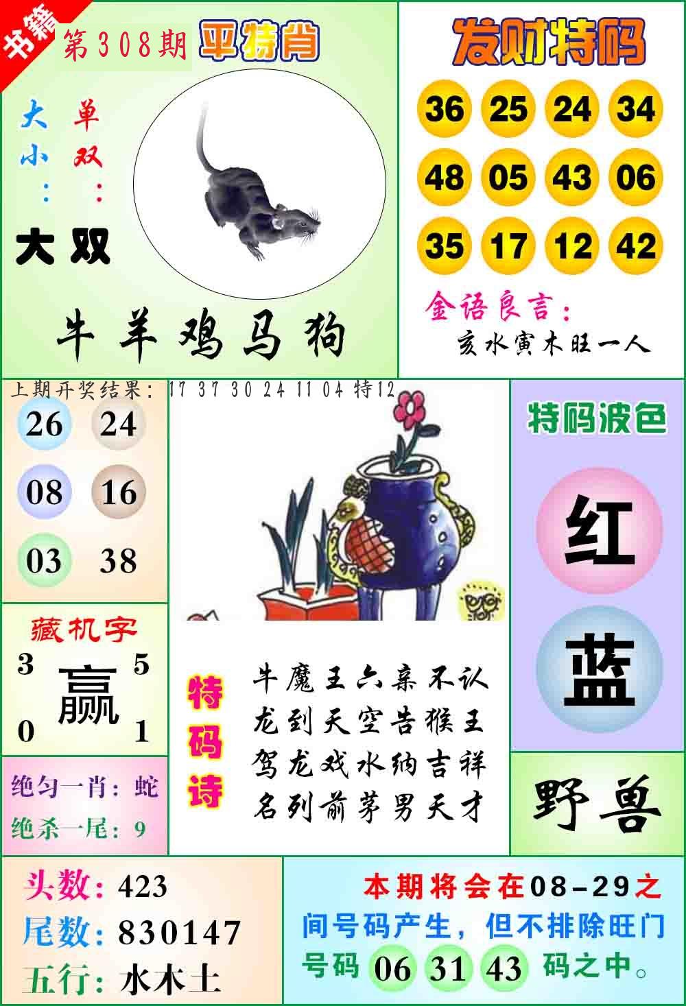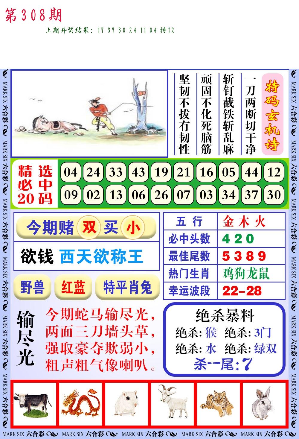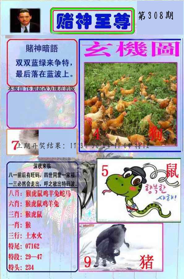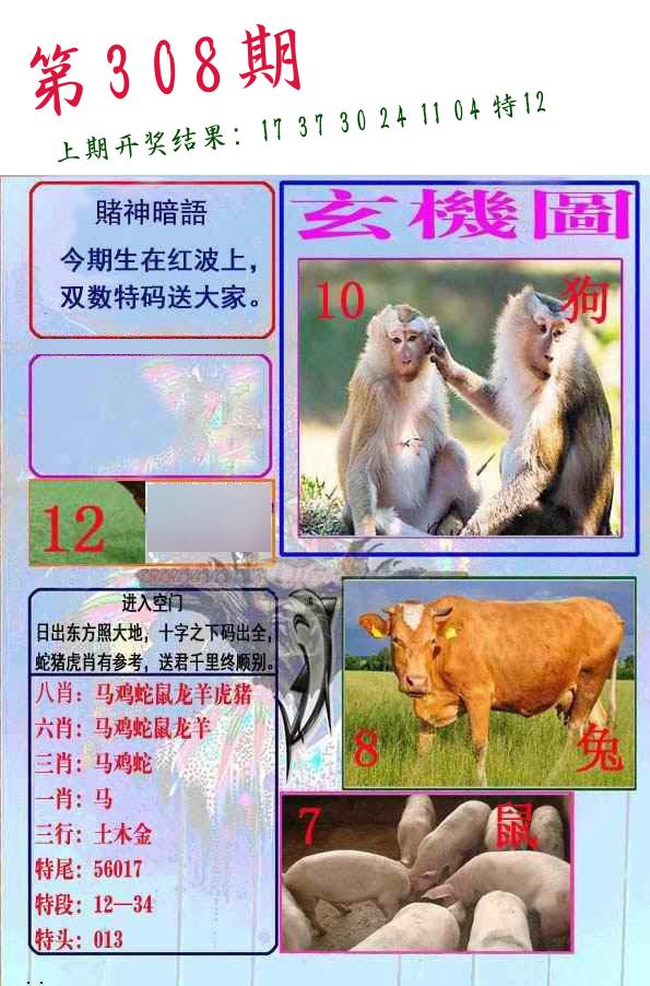 308期 家 【鸡猪狗】 野 【猴蛇兔】开 ???????  |