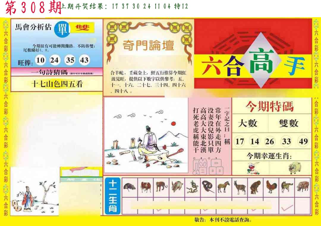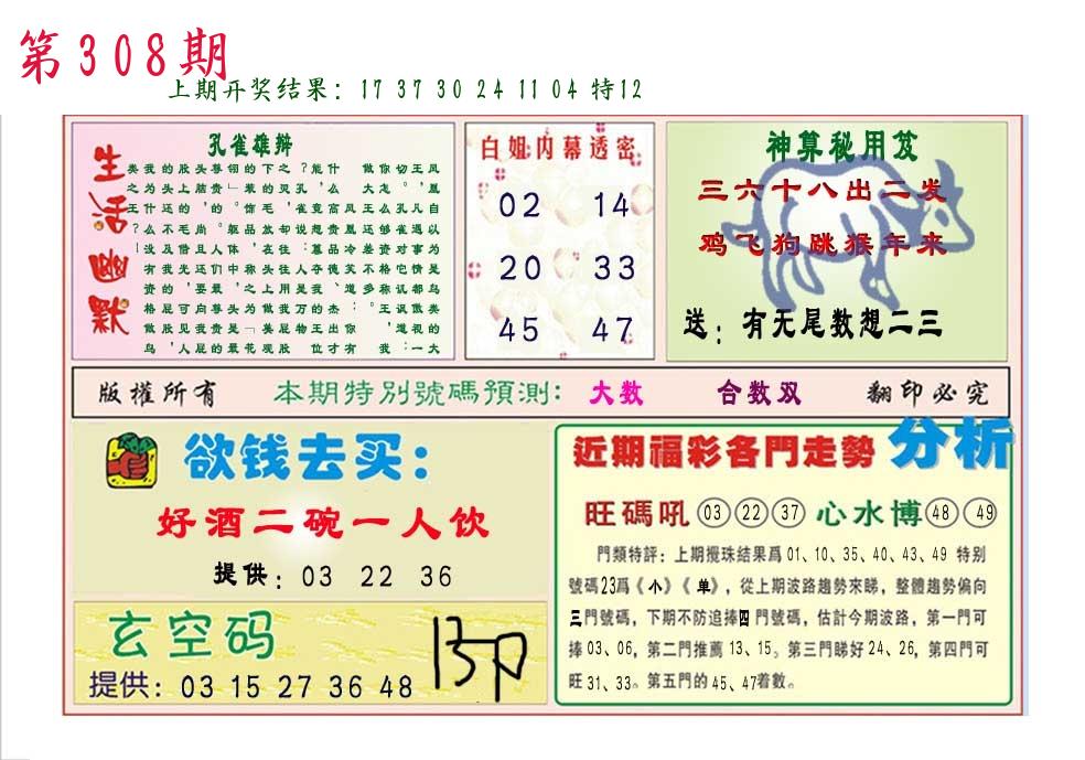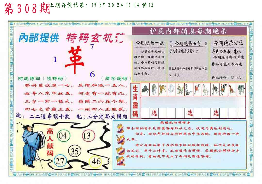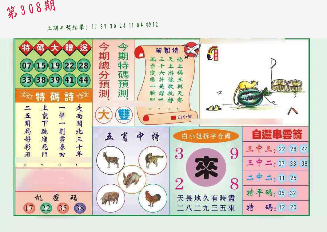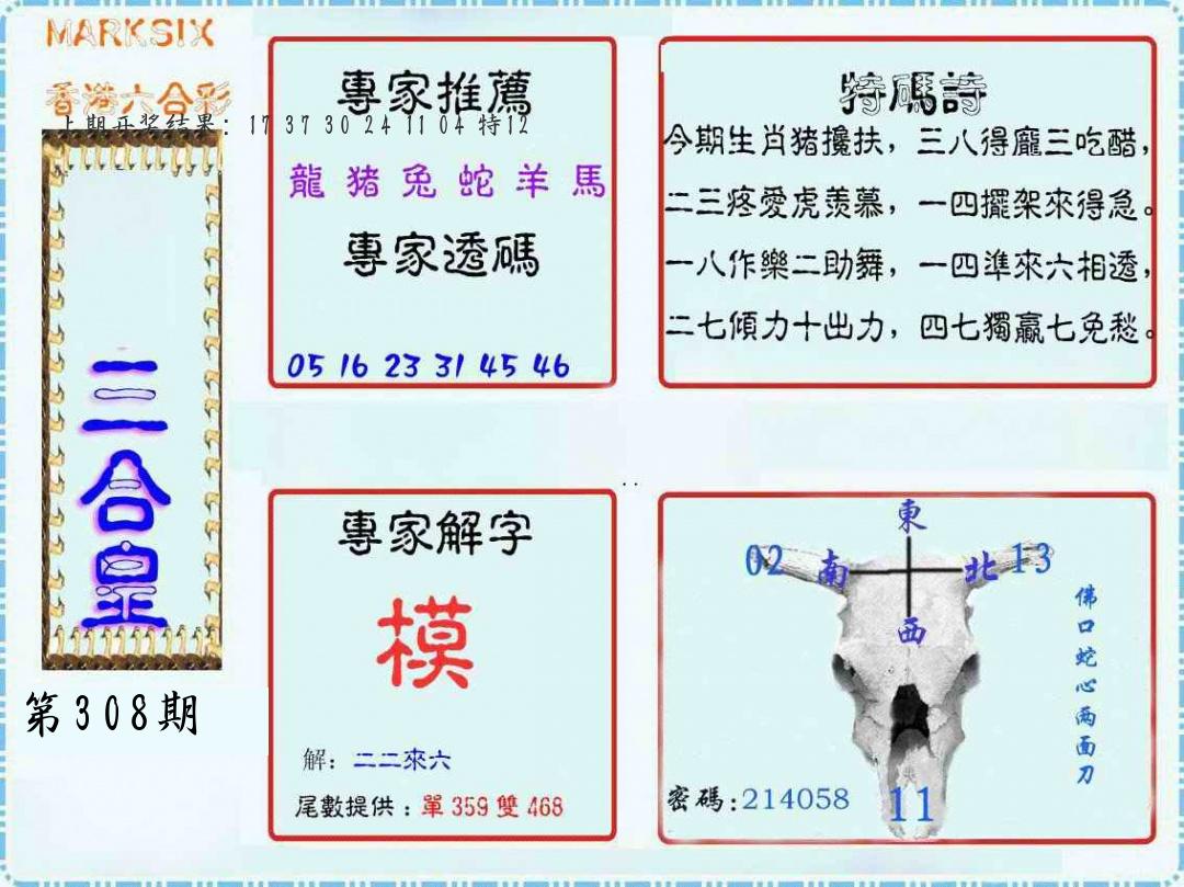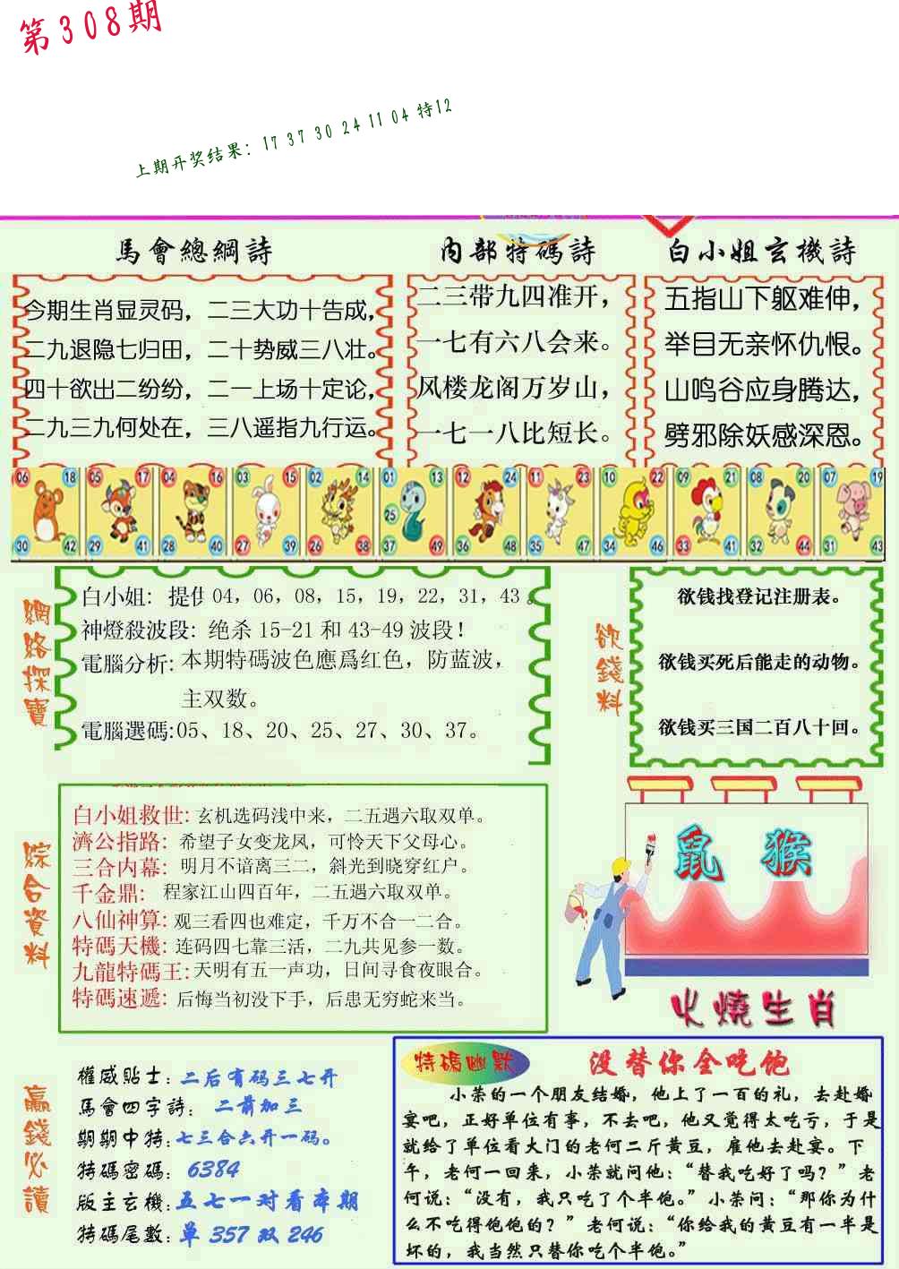 308期 家 【鸡猪狗】 野 【猴蛇兔】开 ???????  |