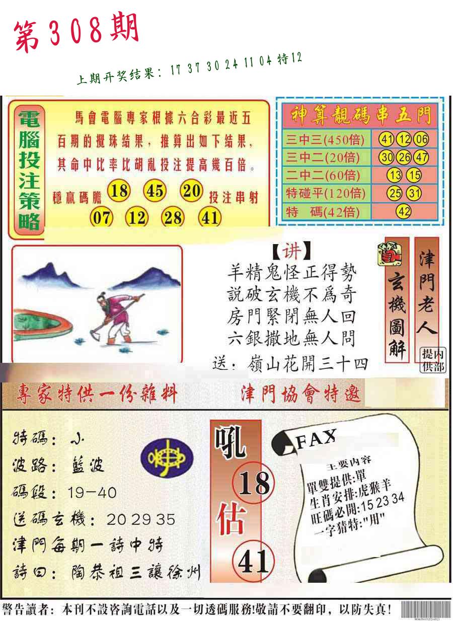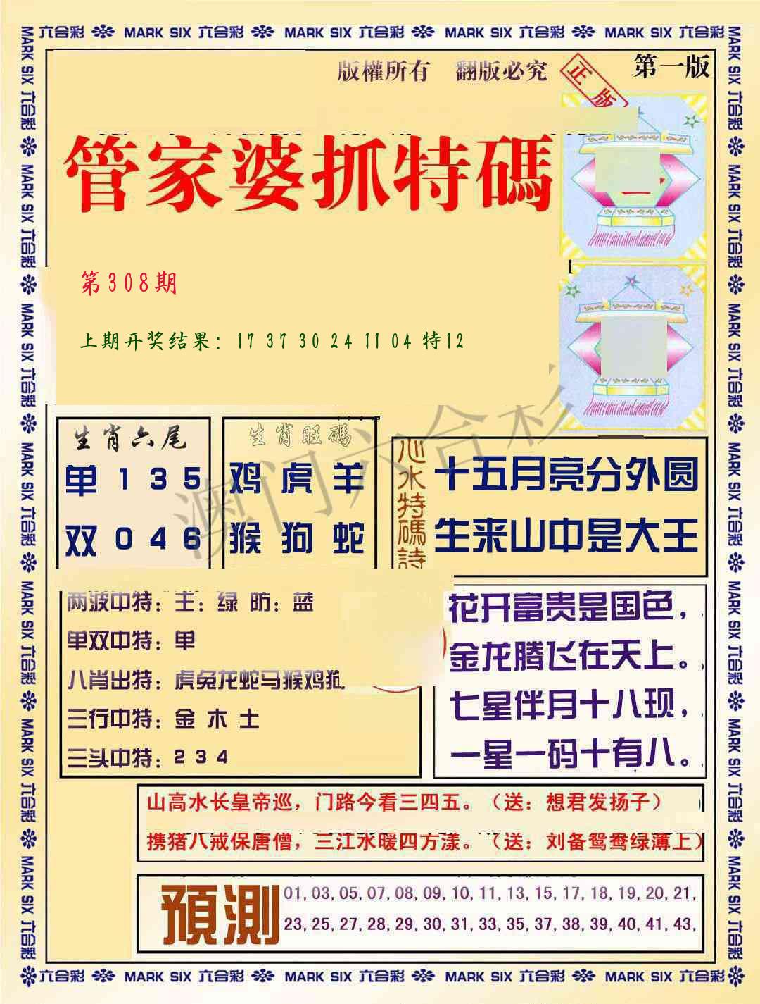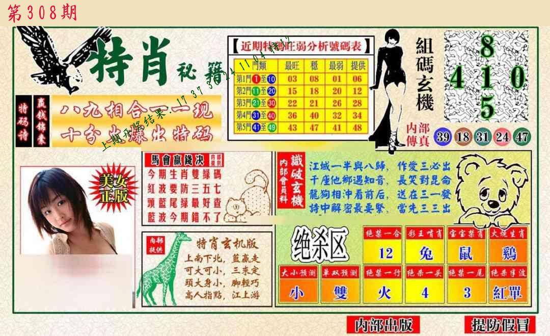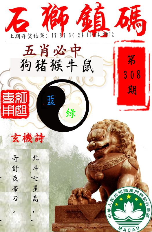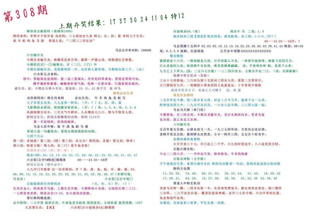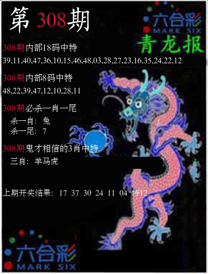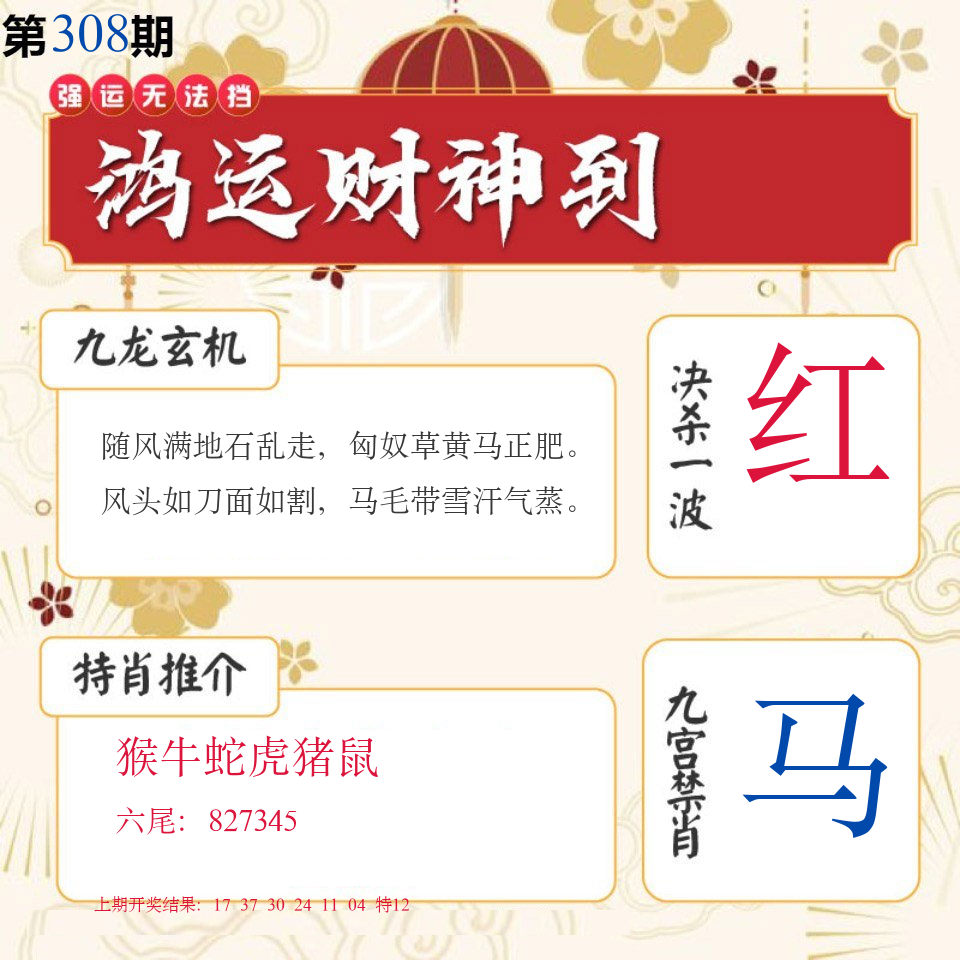 307期绝杀1.肖1.尾 【虎肖1尾】 开 12马对  |