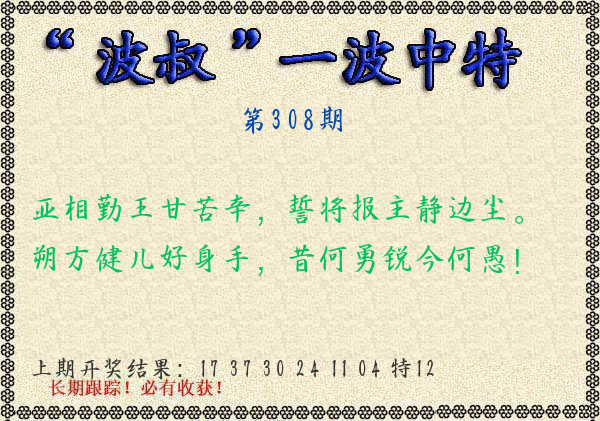 306期绝杀一波 【蓝波】 开 27兔对  |