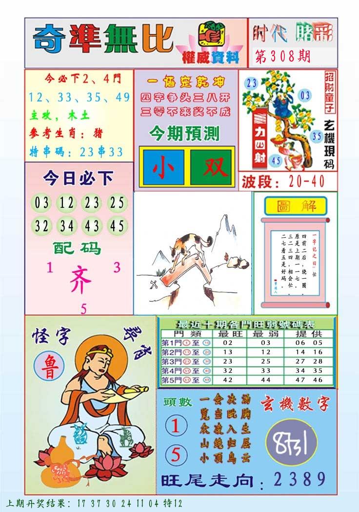 304期琴棋书画 【棋琴书】 开 42鼠对  |