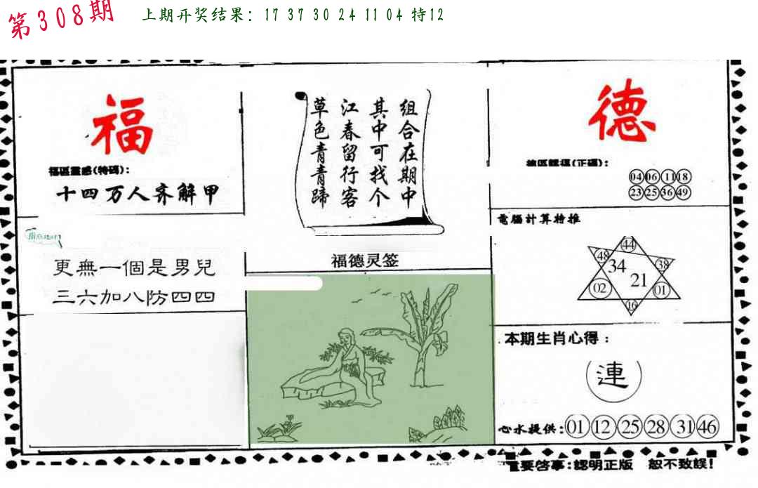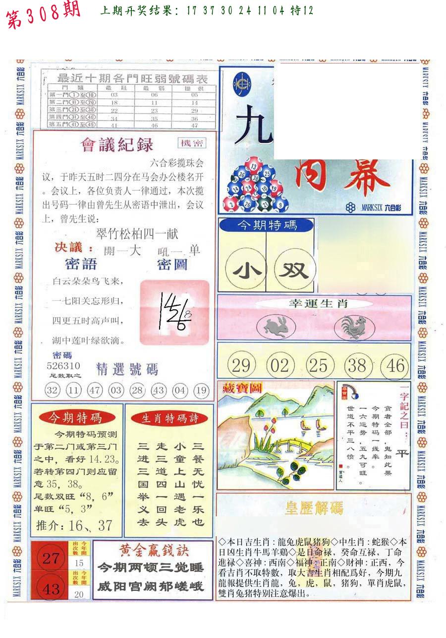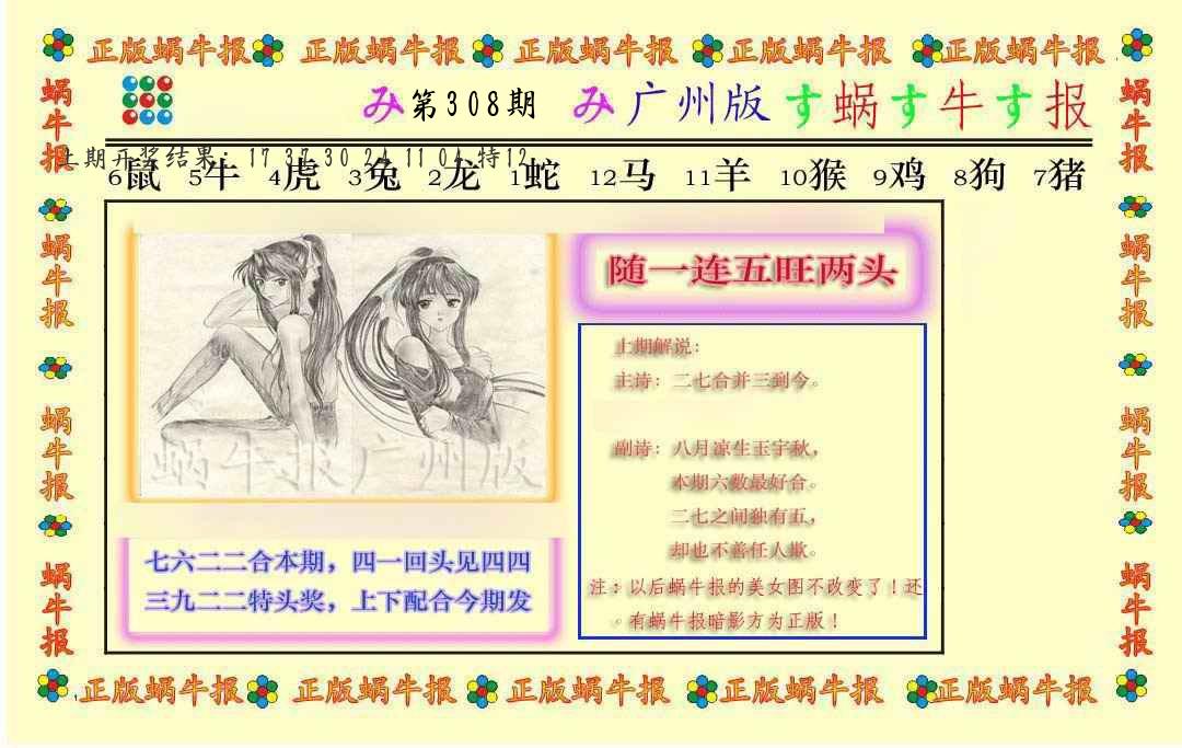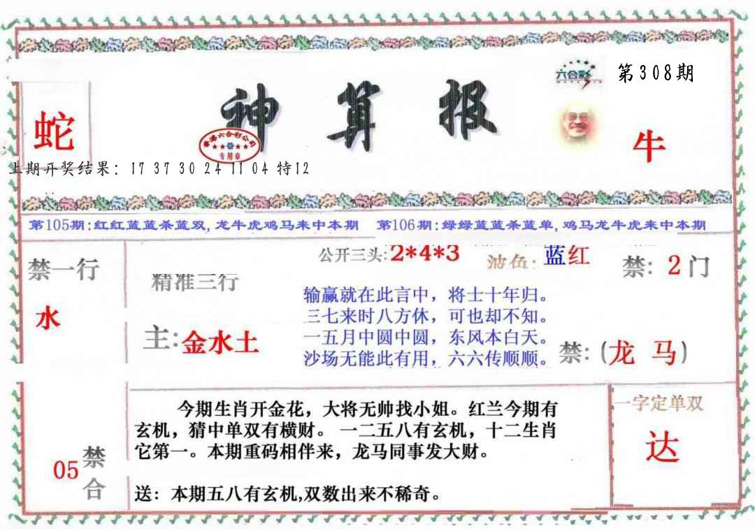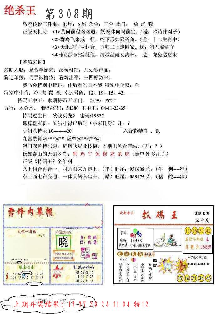 307期 ✄ 〖<鸡.牛.蛇>〗开:12马对准  |