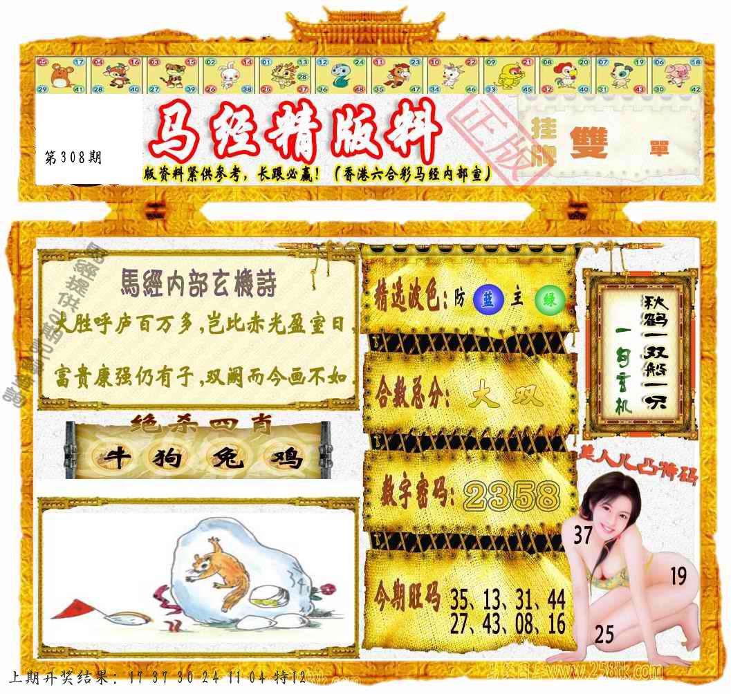 307期 家 【马鸡牛】 野 【兔鼠猴】开 12马对  |