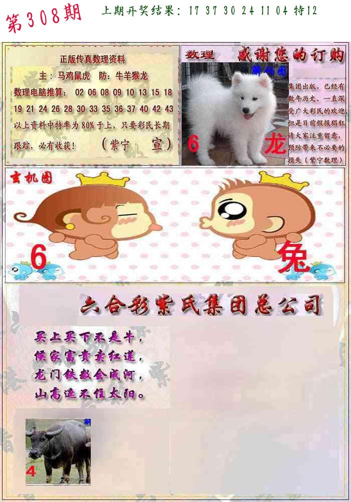 305期 ✄ 〖<兔.马.猴>〗开:26龙对准  |