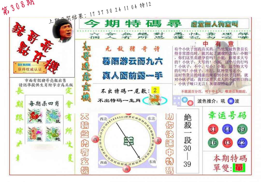 308期绝杀1.肖1.尾 【猪肖0尾】 开 ???????  |
